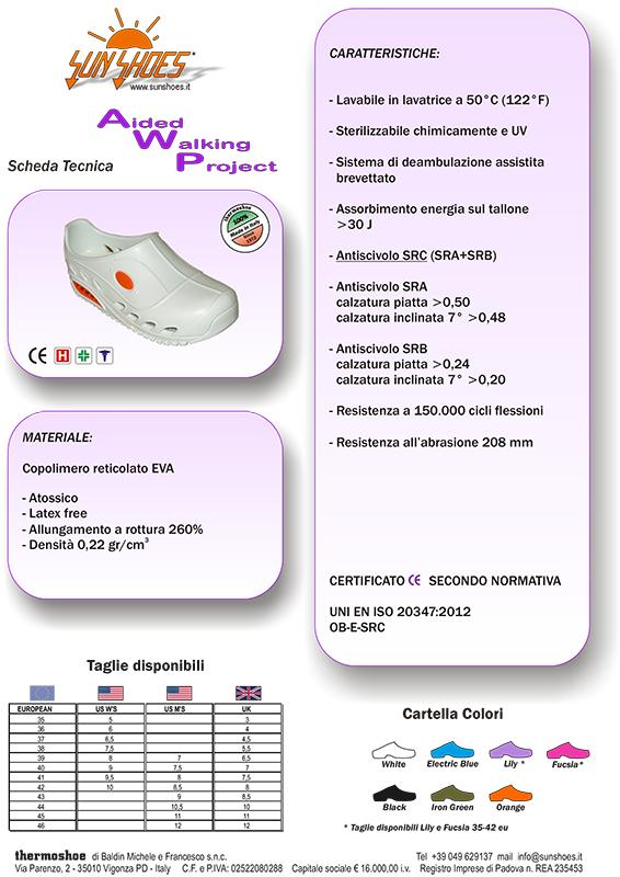 Calzature ospedaliere altamente traspiranti e antiscivolo, la prima calzatura con tallone chiuso e un innovativo sistema di deambulazione.
